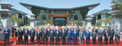 當天中午,習近平同與會領導人和國際組織負責人以國際會議中心“漢唐飛揚”主建筑為背景集體合影。
